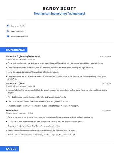 Choose from 10+ customizable mechanical engineering technologist resume templates