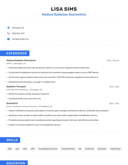 Choose from 10+ customizable medical radiation dosimetrist resume templates