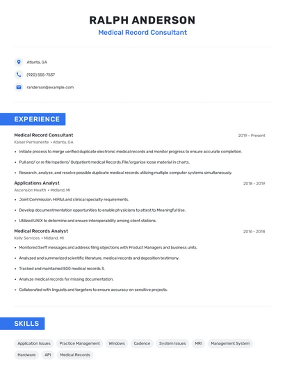Choose from 10+ customizable medical record consultant resume templates