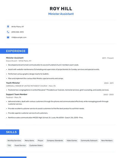 Minister assistant skills for your resume and career