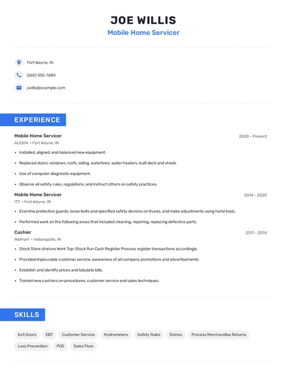Choose from 10+ customizable mobile home servicer resume templates