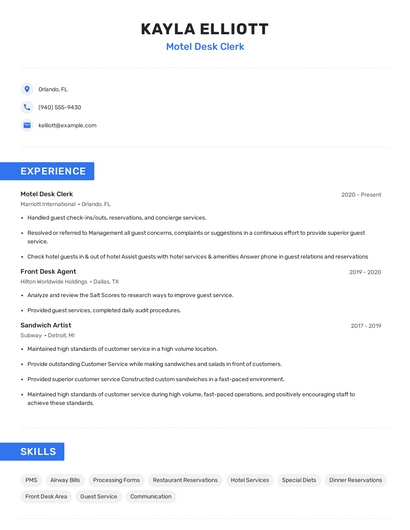 Choose from 10+ customizable motel desk clerk resume templates