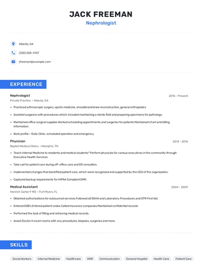 Choose from 10+ customizable nephrologist resume templates