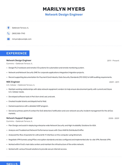 Build a professional network design engineer resume in minutes. Browse through our resume examples to identify the best way to word your resume. Then choose from 5+ resume templates to create your network design engineer resume.