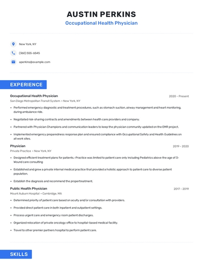 Occupational health physician skills for your resume and career