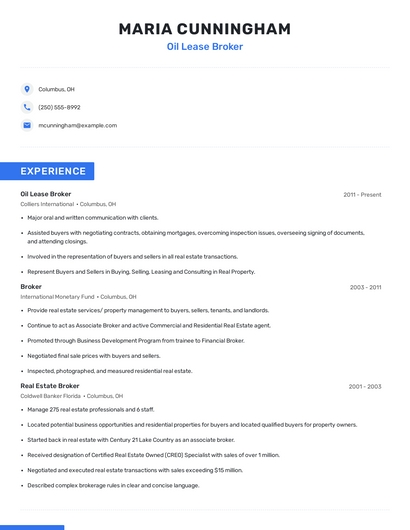 Choose from 10+ customizable oil lease broker resume templates