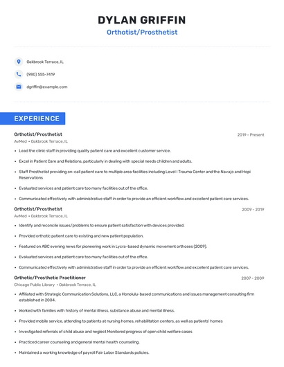 Choose from 10+ customizable orthotist/prosthetist resume templates