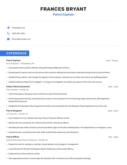 Choose from 10+ customizable patrol captain resume templates