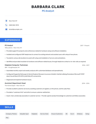 Build a professional pc analyst resume in minutes. Browse through our resume examples to identify the best way to word your resume. Then choose from 5+ resume templates to create your pc analyst resume.
