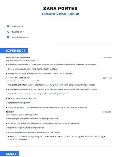 Choose from 10+ customizable pediatric clinical dietician resume templates
