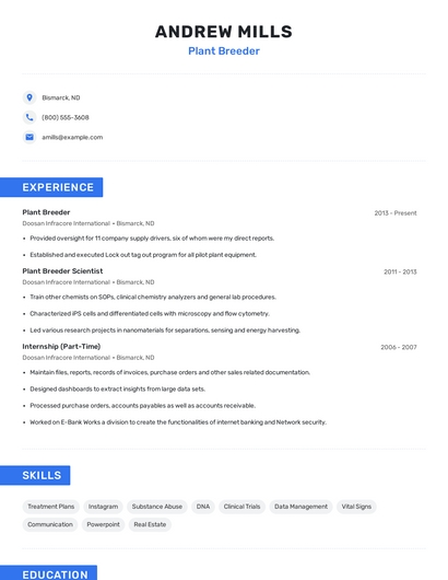 The most important skills for a plant breeder resume and required skills for a plant breeder to have include: