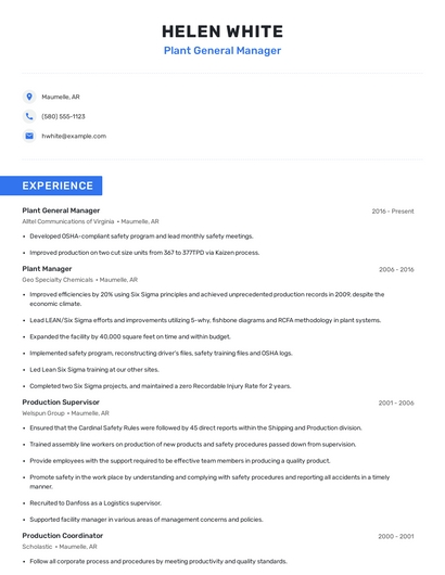 Choose from 10+ customizable plant general manager resume templates