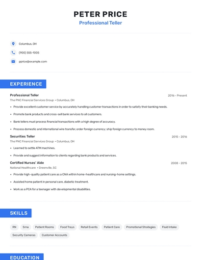 Choose from 10+ customizable professional teller resume templates
