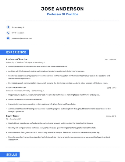 The most important skills for a professor of practice resume and required skills for a professor of practice to have include: