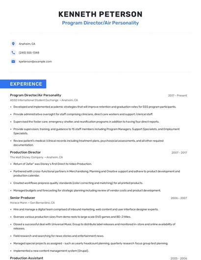 Build a professional program director/air personality resume in minutes. Our AI resume writing assistant will guide you through every step of the process, and you can choose from 10+ resume templates to create your program director/air personality resume.7. Adobe Audition