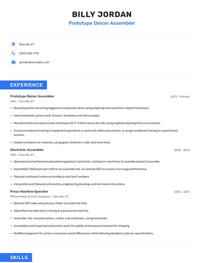 Choose from 10+ customizable prototype deicer assembler resume templates