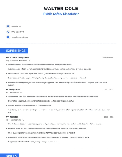 Choose from 10+ customizable public safety dispatcher resume templates