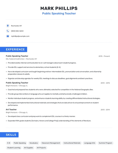 Choose from 10+ customizable public speaking teacher resume templates