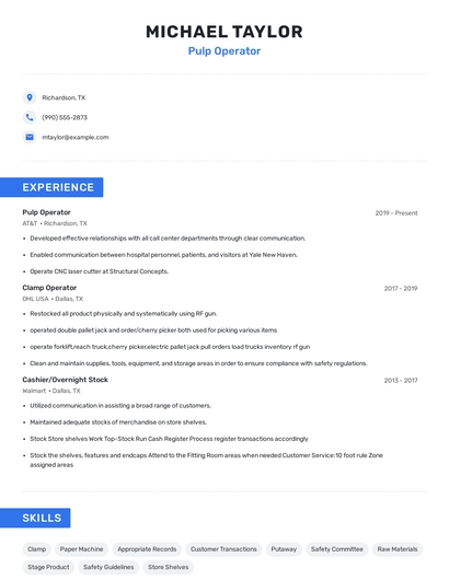 Build a professional pulp operator resume in minutes. Our AI resume writing assistant will guide you through every step of the process, and you can choose from 10+ resume templates to create your pulp operator resume.7. Agitators