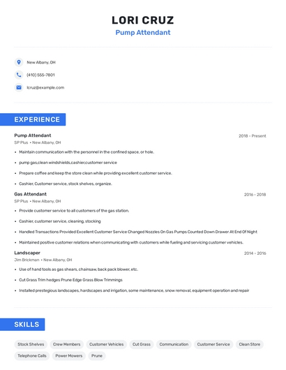 Choose from 10+ customizable pump attendant resume templates
