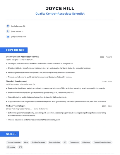Choose from 10+ customizable quality control-associate scientist resume templates