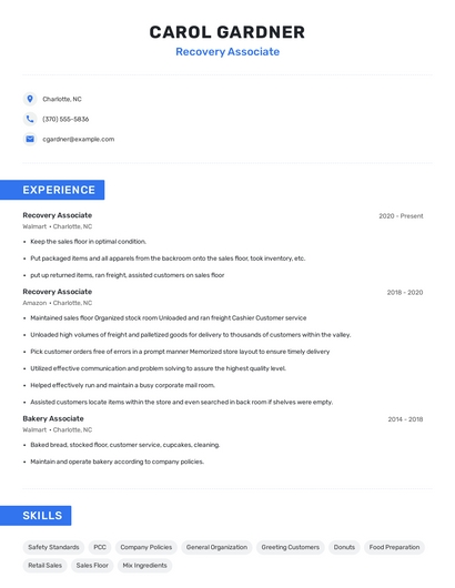 Build a professional recovery associate resume in minutes. Browse through our resume examples to identify the best way to word your resume. Then choose from 5+ resume templates to create your recovery associate resume.