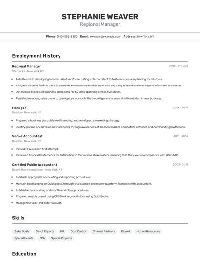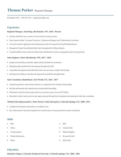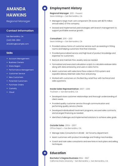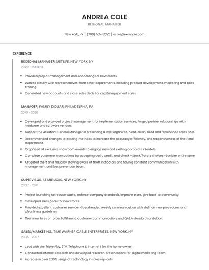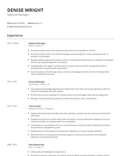 Build a professional regional manager resume in minutes. Our AI resume writing assistant will guide you through every step of the process, and you can choose from 10+ resume templates to create your regional manager resume.Compare different regional managers