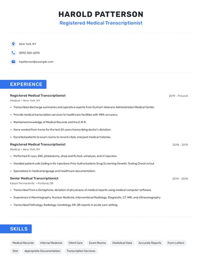 Registered medical transcriptionist skills for your resume and career