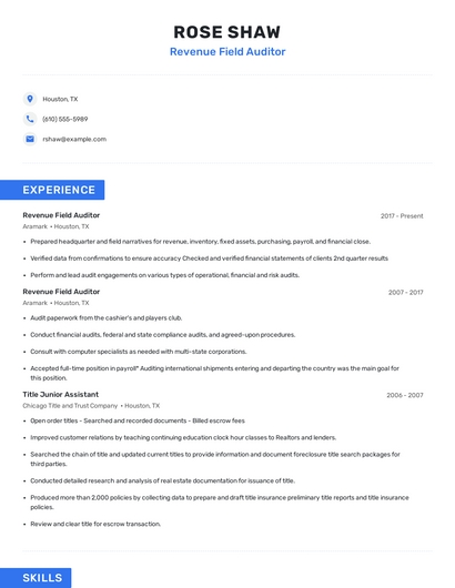 Choose from 10+ customizable revenue field auditor resume templates