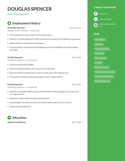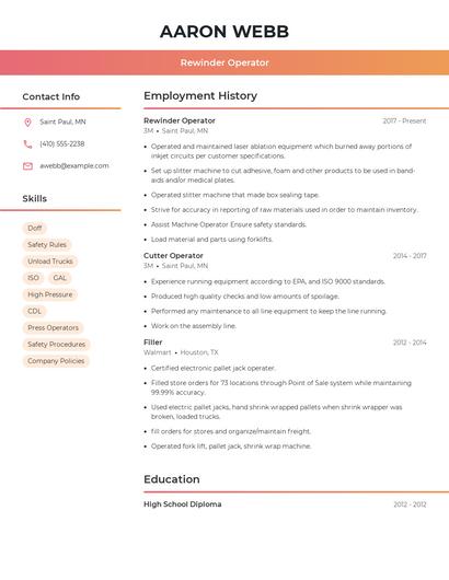 When your background is strong enough, you can start writing your rewinder operator resume.