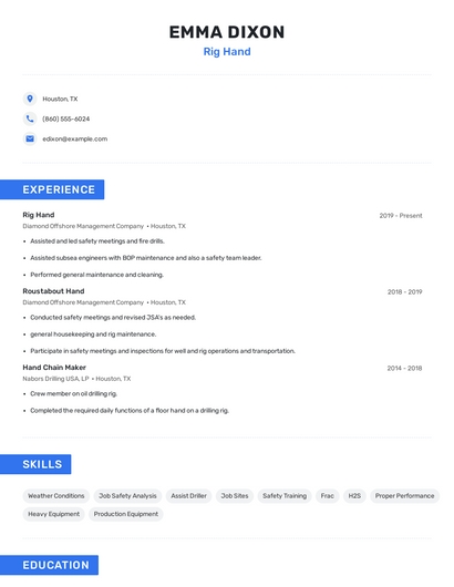 Choose from 10+ customizable rig hand resume templates