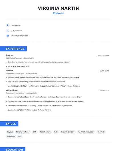 Build a professional rodman resume in minutes. Browse through our resume examples to identify the best way to word your resume. Then choose from 5+ resume templates to create your rodman resume.