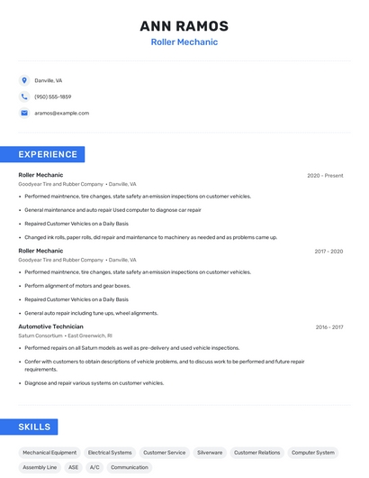 The most important skills for a roller mechanic resume and required skills for a roller mechanic to have include: