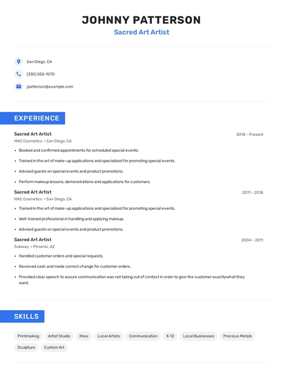 Choose from 10+ customizable sacred art artist resume templates