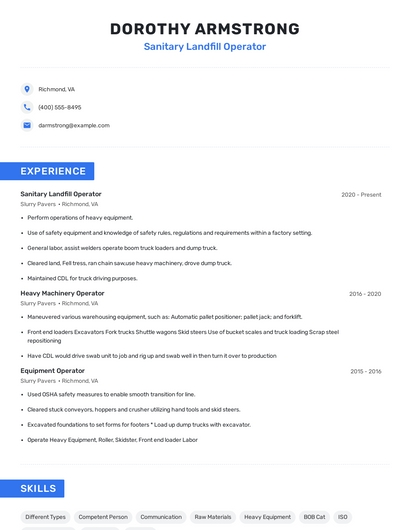 Choose from 10+ customizable sanitary landfill operator resume templates