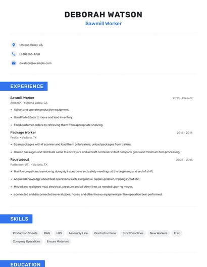 Sawmill worker skills for your resume and career