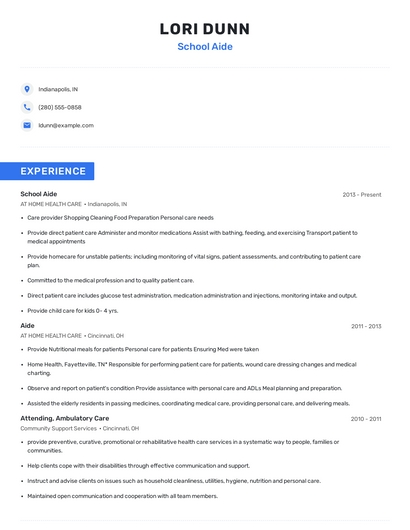 Build a professional school aide resume in minutes. Browse through our resume examples to identify the best way to word your resume. Then choose from 5+ resume templates to create your school aide resume.