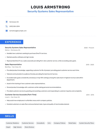 Choose from 10+ customizable security systems sales representative resume templates