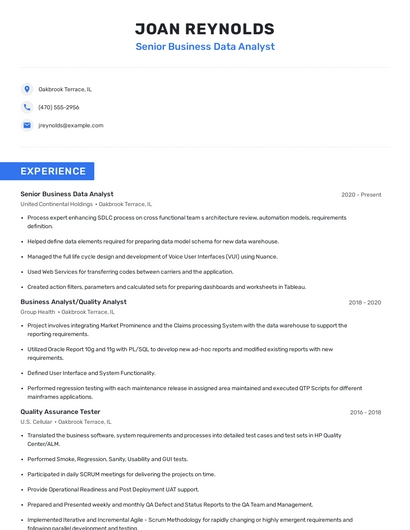 Build a professional senior business data analyst resume in minutes. Browse through our resume examples to identify the best way to word your resume. Then choose from 5+ resume templates to create your senior business data analyst resume.