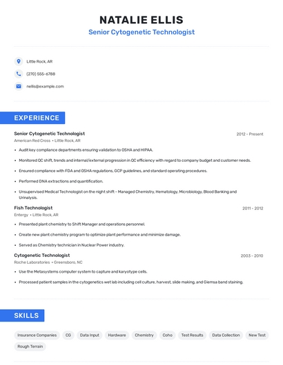 Choose from 10+ customizable senior cytogenetic technologist resume templates
