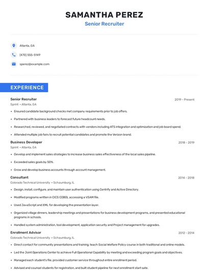 Choose from 10+ customizable senior recruiter resume templates