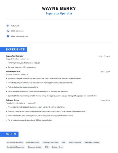 The most important skills for a separator operator resume and required skills for a separator operator to have include: