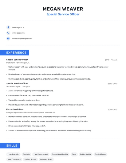 The most important skills for a special service officer resume and required skills for a special service officer to have include: