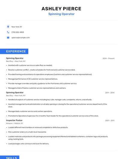 The most important skills for a spinning operator resume and required skills for a spinning operator to have include: