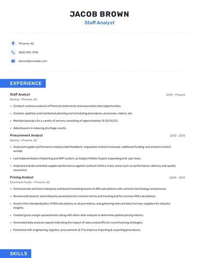 Choose from 10+ customizable staff analyst resume templates