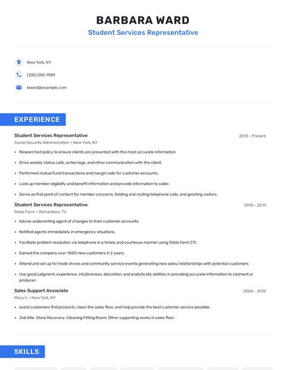Choose from 10+ customizable student services representative resume templates
