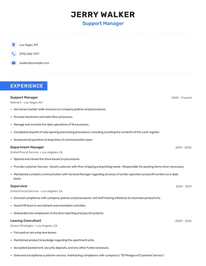 Build a professional support manager resume in minutes. Browse through our resume examples to identify the best way to word your resume. Then choose from 5+ resume templates to create your support manager resume.