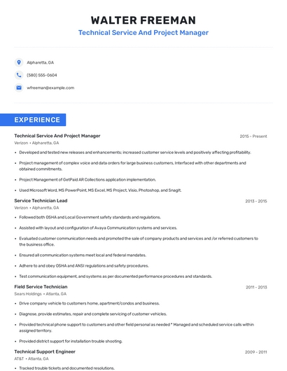 Choose from 10+ customizable technical service and project manager resume templates
