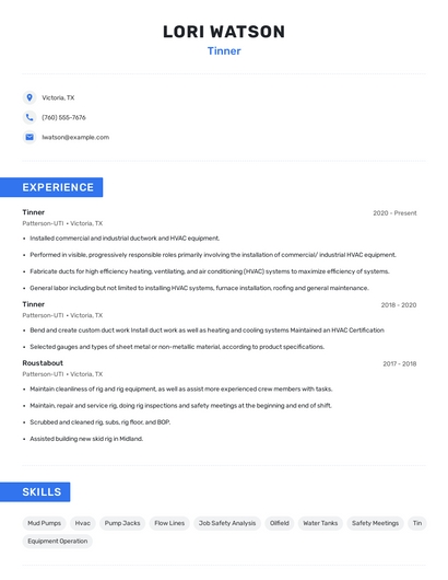 The most important skills for a tinner resume and required skills for a tinner to have include: