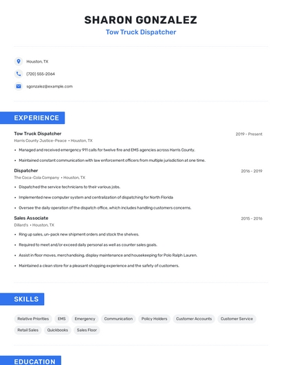 Choose from 10+ customizable tow truck dispatcher resume templates